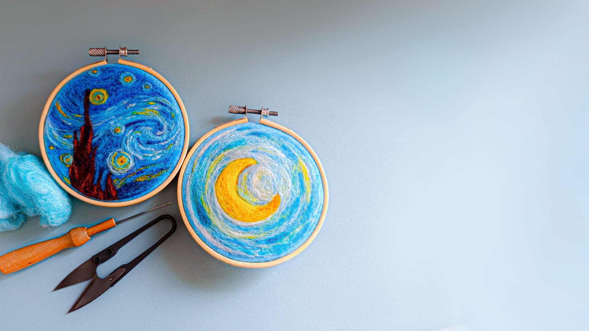 Pintar con lana: Edición "La Noche Estrellada" - Felting sobre bastidor