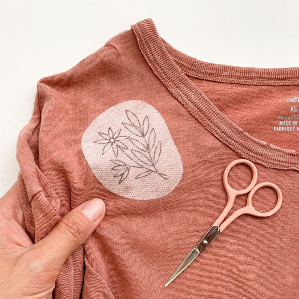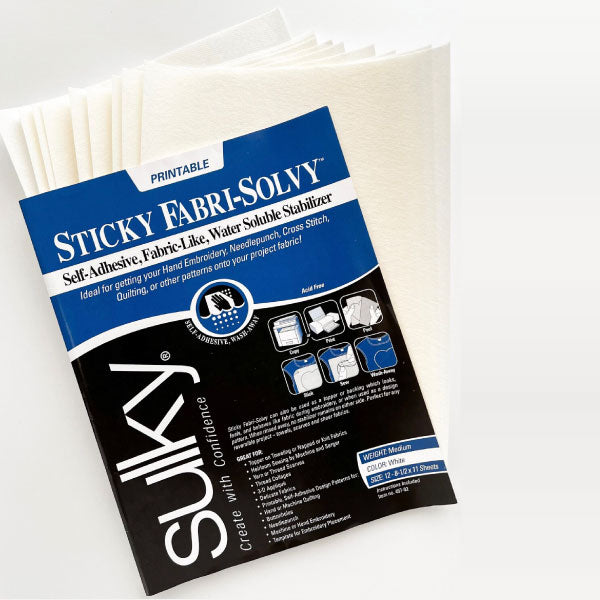 ¡Este estabilizador tiene el reverso autoadhesivo! Imprime, copia o dibuja tu diseño en él, retira la hoja de liberación y pega el diseño donde quieras para empezar a bordarlo.